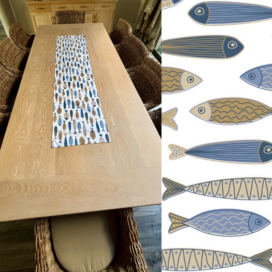 Table Runner Blue & Beige Fish